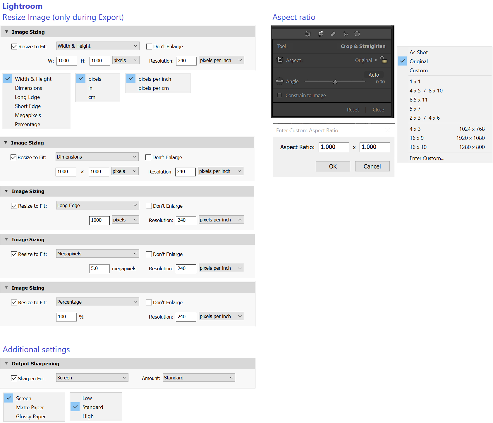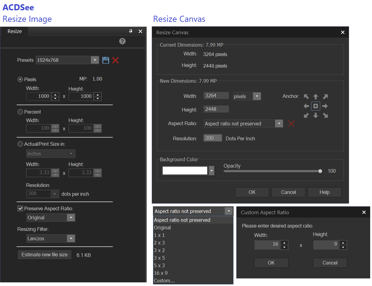 Also, there is no way to change aspect ratio with these tools, only via AspectPad in Batch mode.