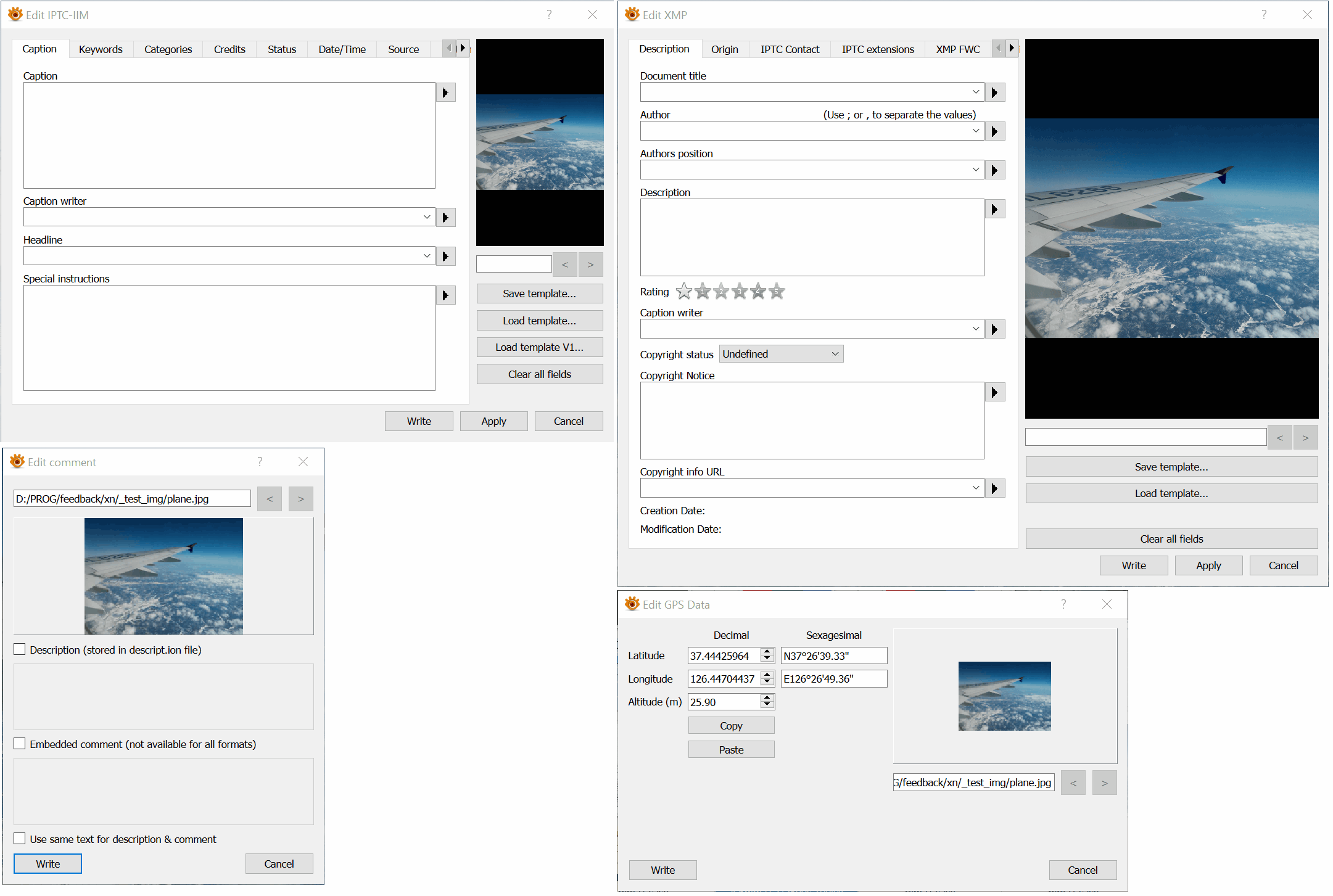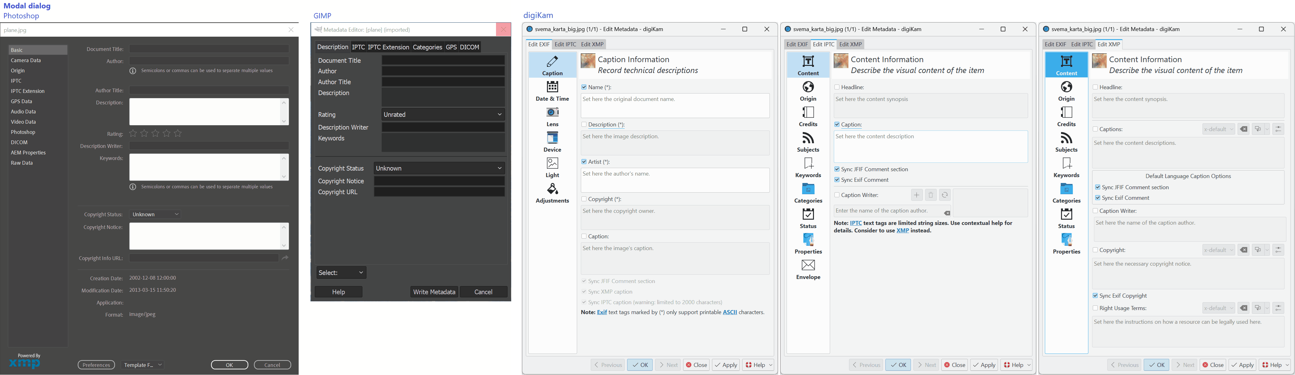 Merge all Metadata related dialogs in a single dialog and minimize use of tabs (see how Photoshops' dialog look much cleaner over GIMP's one).