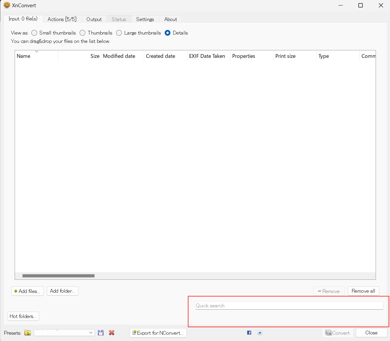 input files>quick search does not work