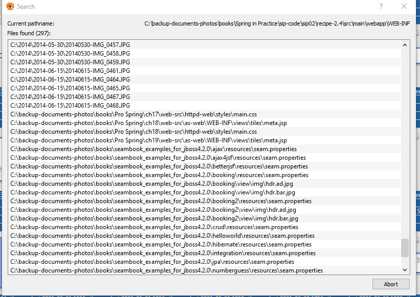 I learn this tool through ChatGPT as I need to find any folds containing image files. As the starting point, I search images by type, JPG. For some reason, the search result yields a lot of entries in addition to JPG files. I have to abort the search after 80 K returned files. Is it a usage error? if so, how to correct it?