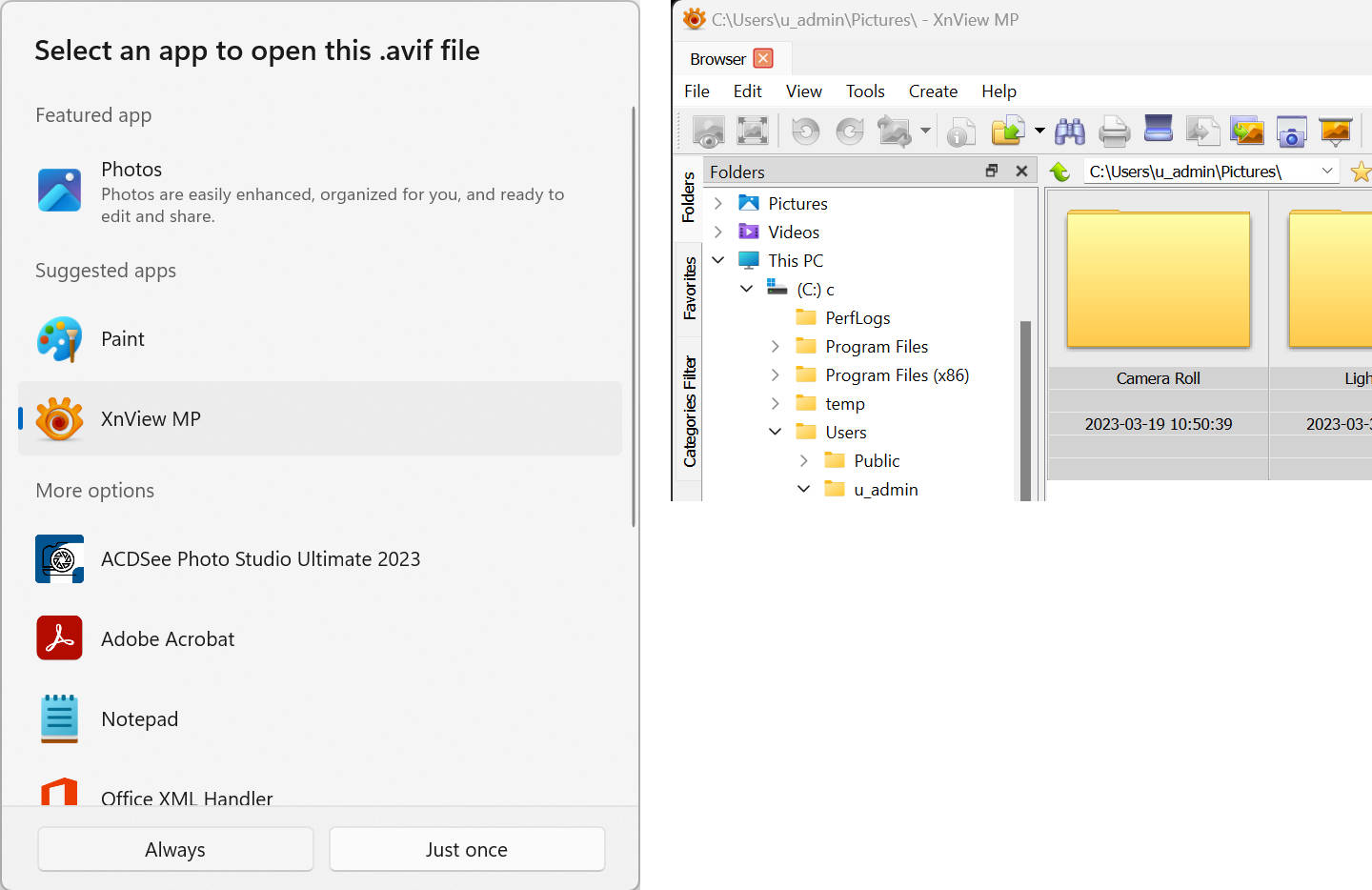 In browser window XnView some time I see this files, some time not. When I see animated avif I can not open it by double click or right click (Open function is gray). I always see other avif images in browser window.