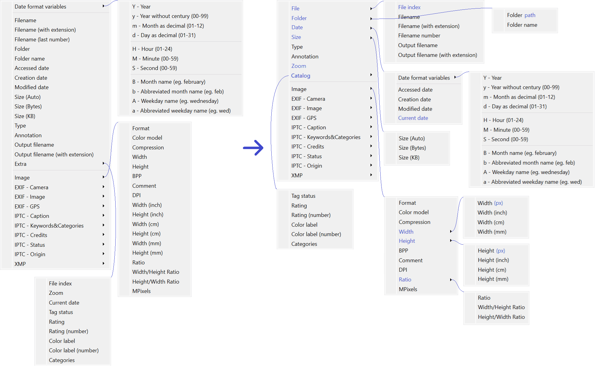 'Insert' ⯈ menu (eg in Settings>View>Info tab) has a lot of ungrouped items
