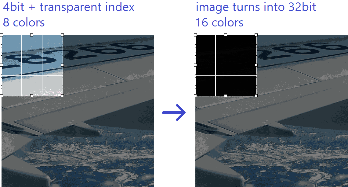- pasted data will be corrupted (as result colors quantity increased to 16)