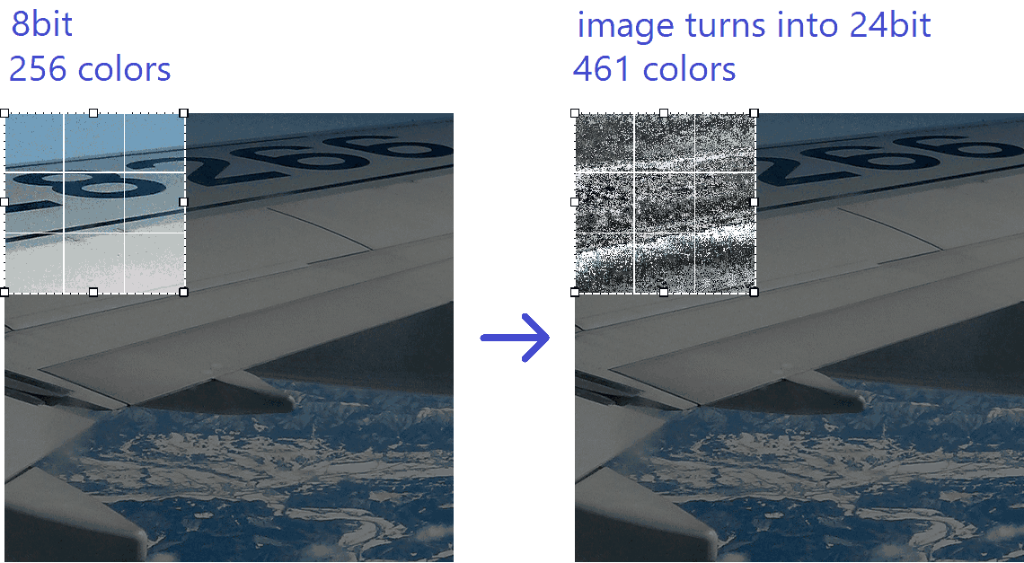 - pasted data will be corrupted (as result colors quantity increased to 461)