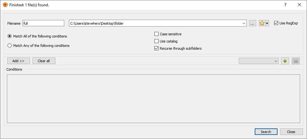 It works here, do you have 'Show hidden files & folders' on?stevehero wrote: Wed Jun 21, 2023 10:11 pm Just updated my portable version and searched for filenames that are hidden and it doesn't come back with any results.