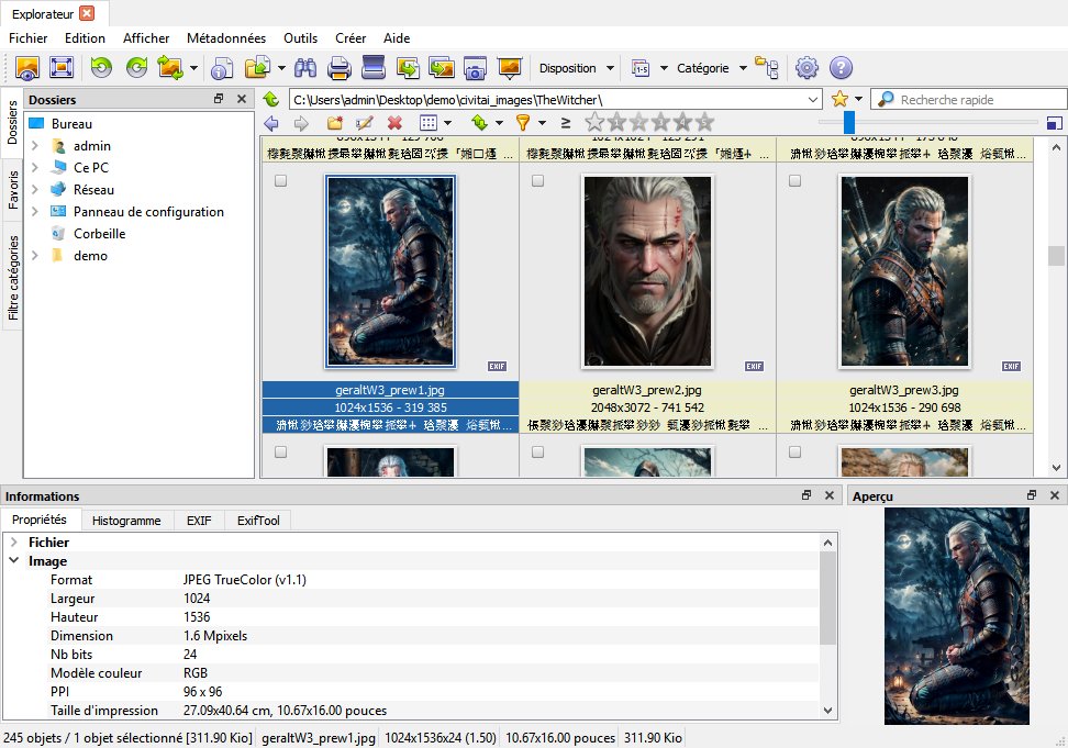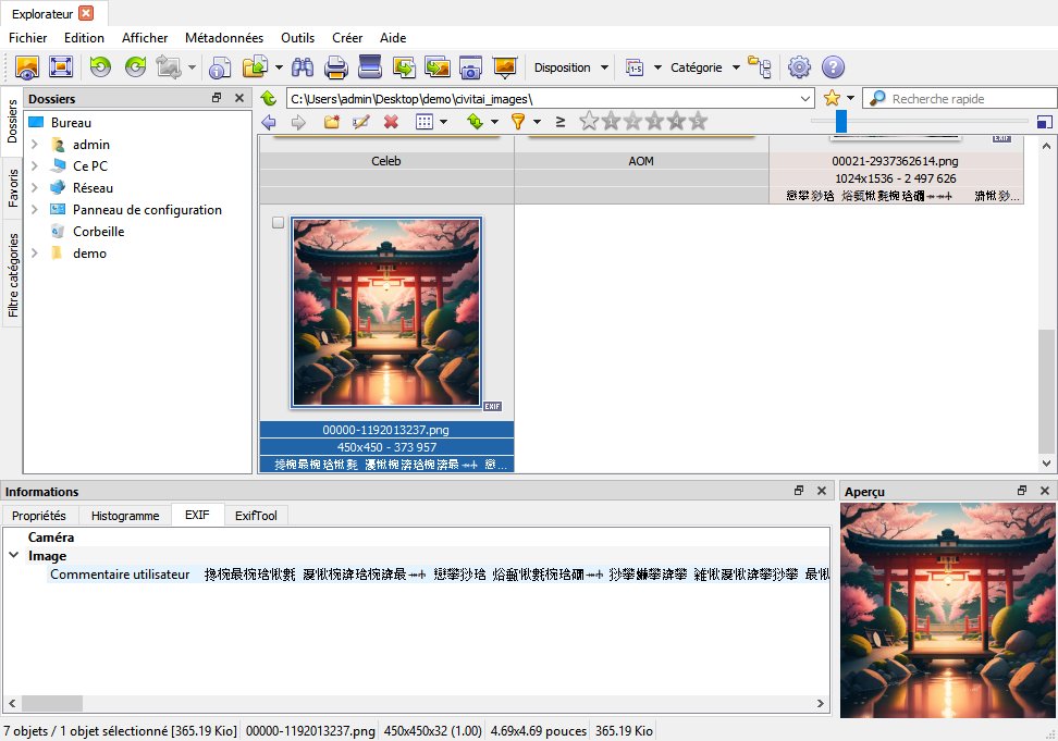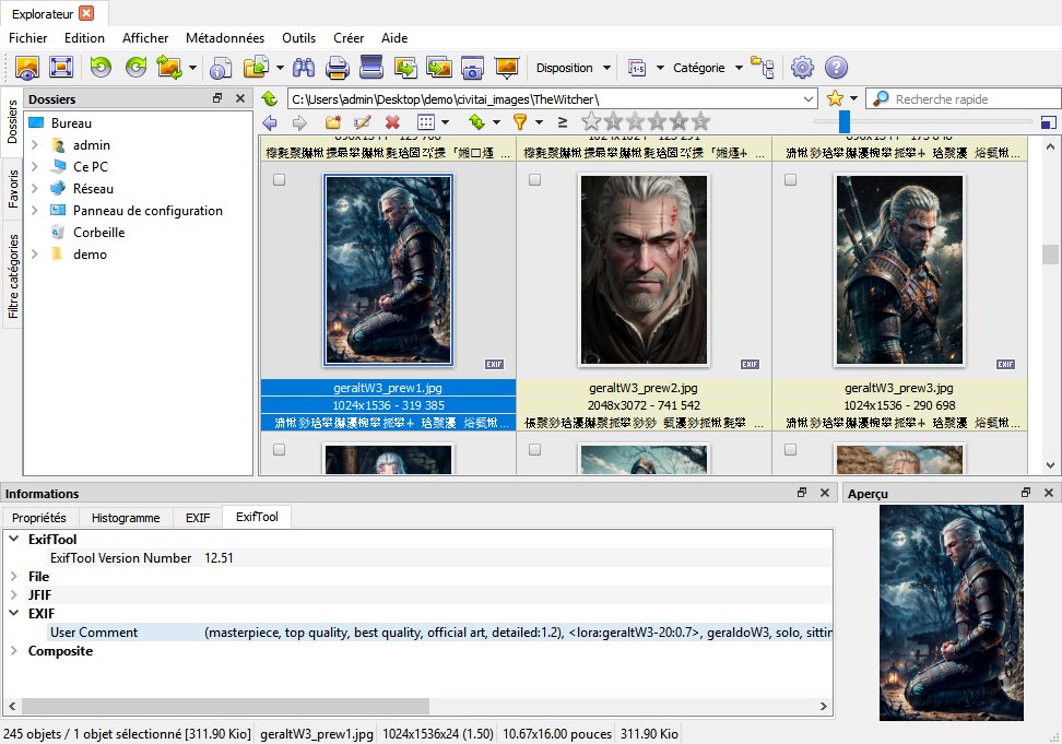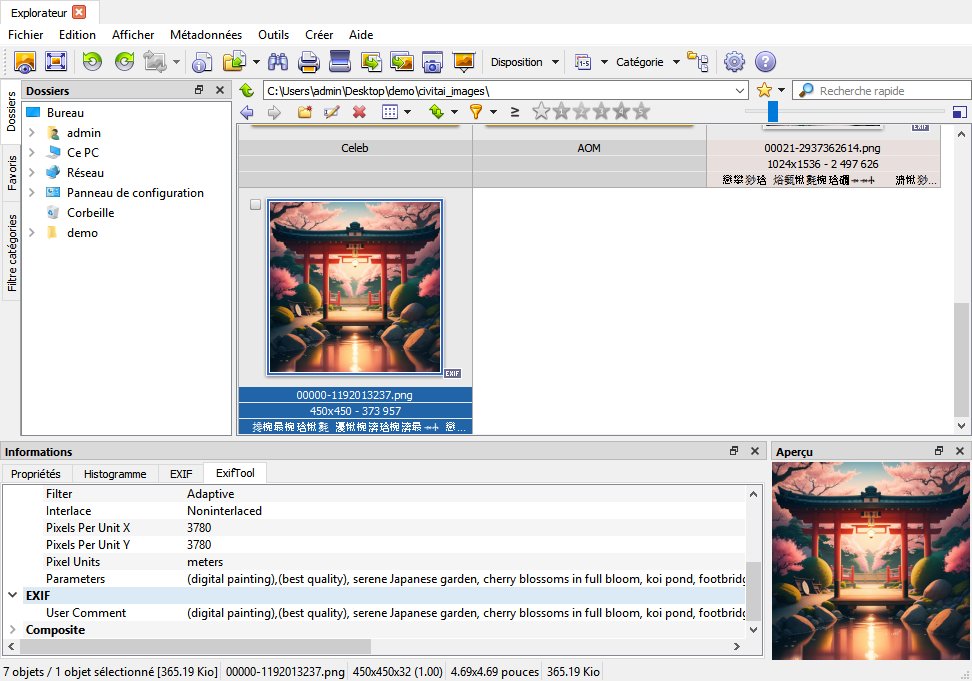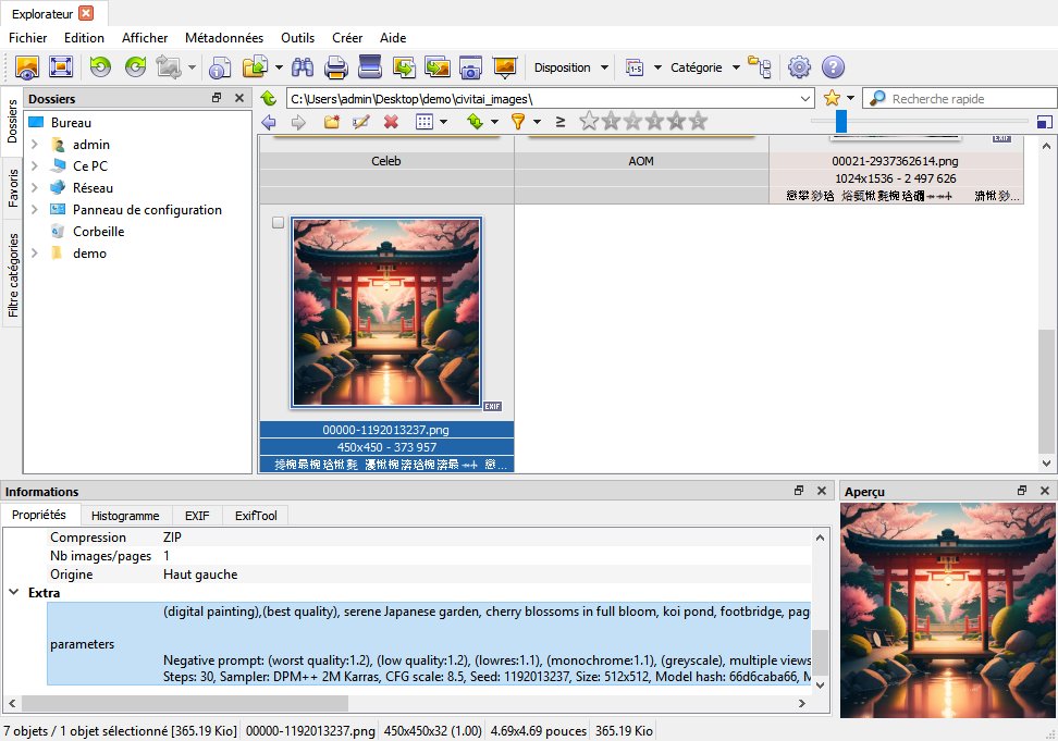 P.S. Additionally, you will see another small display bug for the third file in Properties panel, between "anatomy)" and "easynegative" as Extra->parameters Unicode tag uses some SC (simplified Chinese) characters and the default font used by Properties/ExifTools/EXIF panels do no have these characters: there is any way to change the default font used by these panels ? This is *only* a graphical bug, because when you copy the entry to Notepad++ or any browser you can see correctly all text.