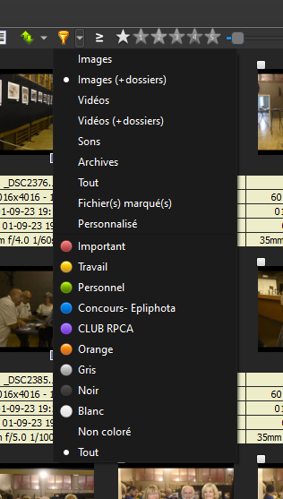 Menu qui apparaît quand je clique sur "Filtrer par"
