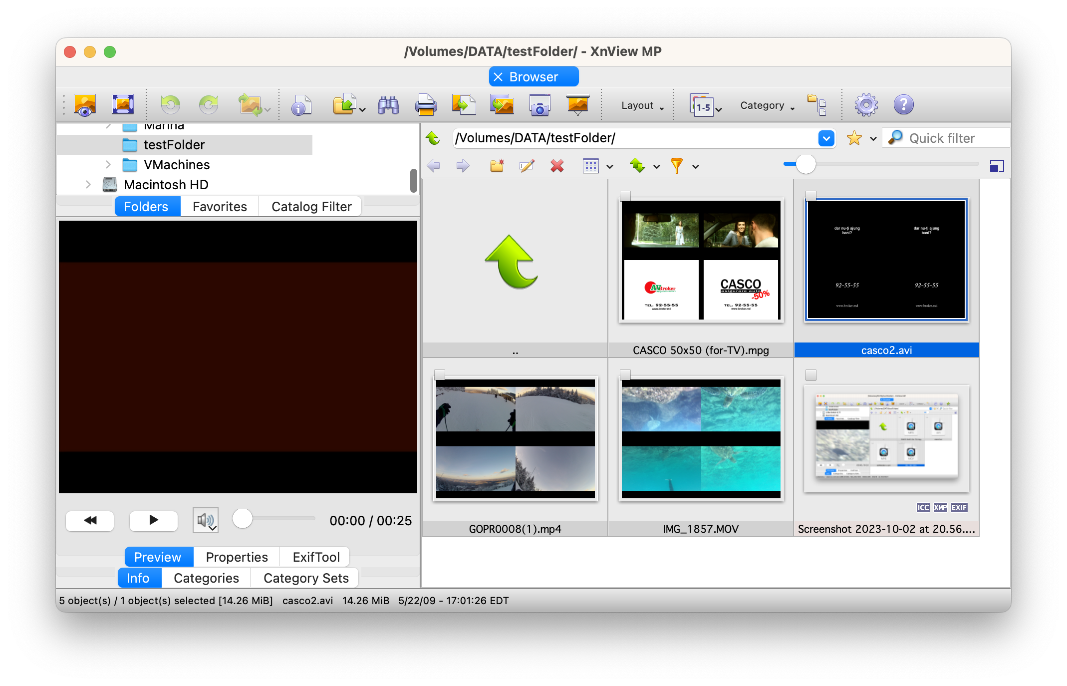 2. Navigate to a folder with videofiles