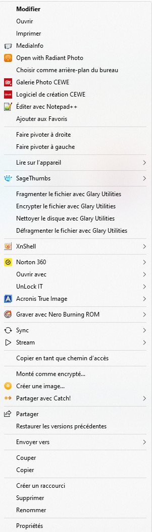 Ok, c'est pour ça que je pense à une extension x64bit ou l'anti virus? Qu'avez vous comme extension du menu contextuel?Philippelouis wrote: Mon Sep 25, 2023 2:46 pm Total Commander 64.