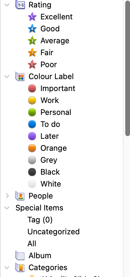 4FamilyPhotos wrote: Tue Oct 10, 2023 5:35 pm I'm not sure what you mean. I am only interested in applying categories to my photos which are in on file and then sub files by date. I have applied categories to most of them. In order to know which ones do not have categories applied, I was hoping to find a place where I could separate all my photos that don't have categories. I thought that was the 'Uncategorized' in the Catalog Filter tab, but it doesn't seem so.