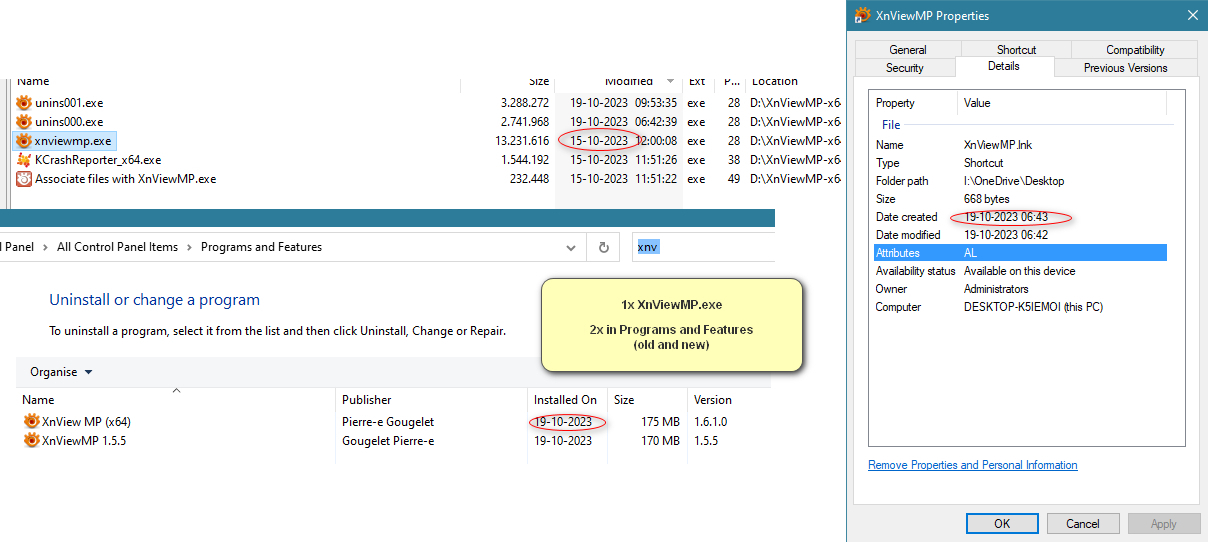 - XnViewMP.exe (file on HDD) is dated 15-10-2023