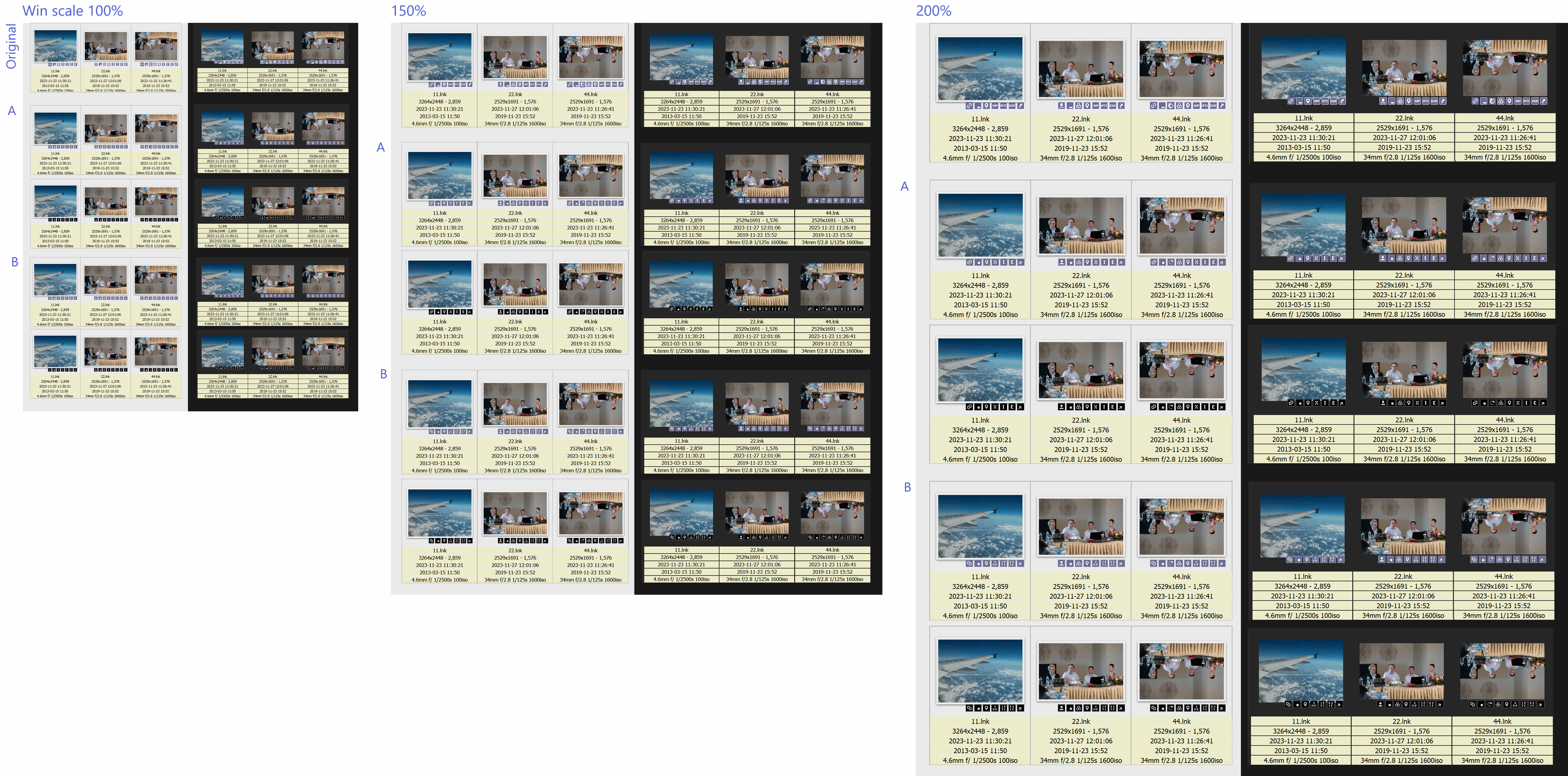 The complete "IPTC, XMP, etc" are better when the icons are large, otherwise they are difficult to read.