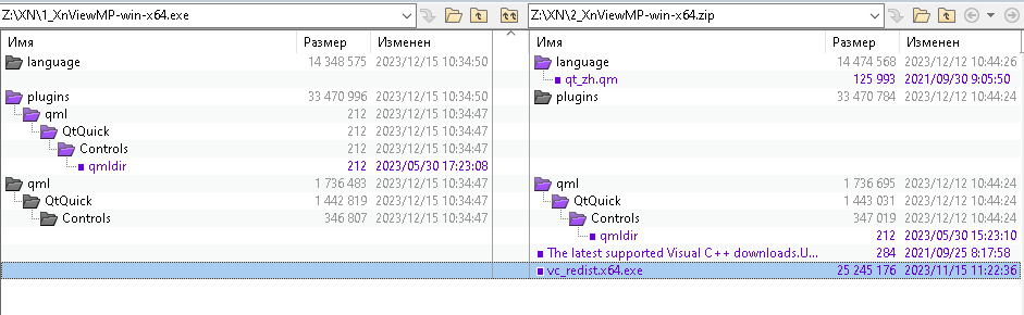 This is not Convert vs something. This is XnViewMP x64 vs XnViewMP x64. One is installer, another is archive. plugins/QtQuick/qmldir jumps from directory to directory, vcredist, China language