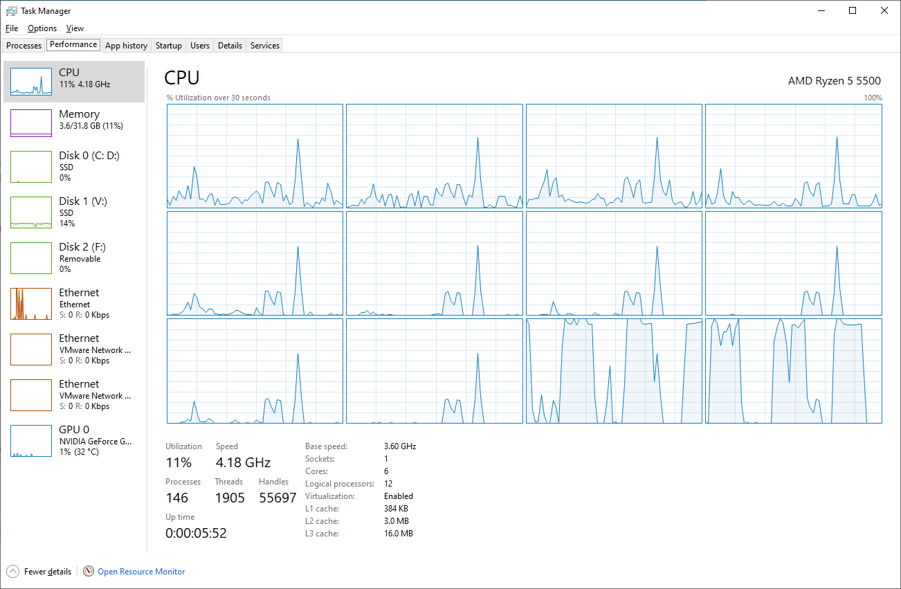 I recently upgraded my CPU to Ryzen 5 5500 hoping for improvement in thumbnails generation time, but i notice CPU only used 30% when thumbnails getting generated, if not CPU what then slows down the generation process, images are on SSD hard drive.