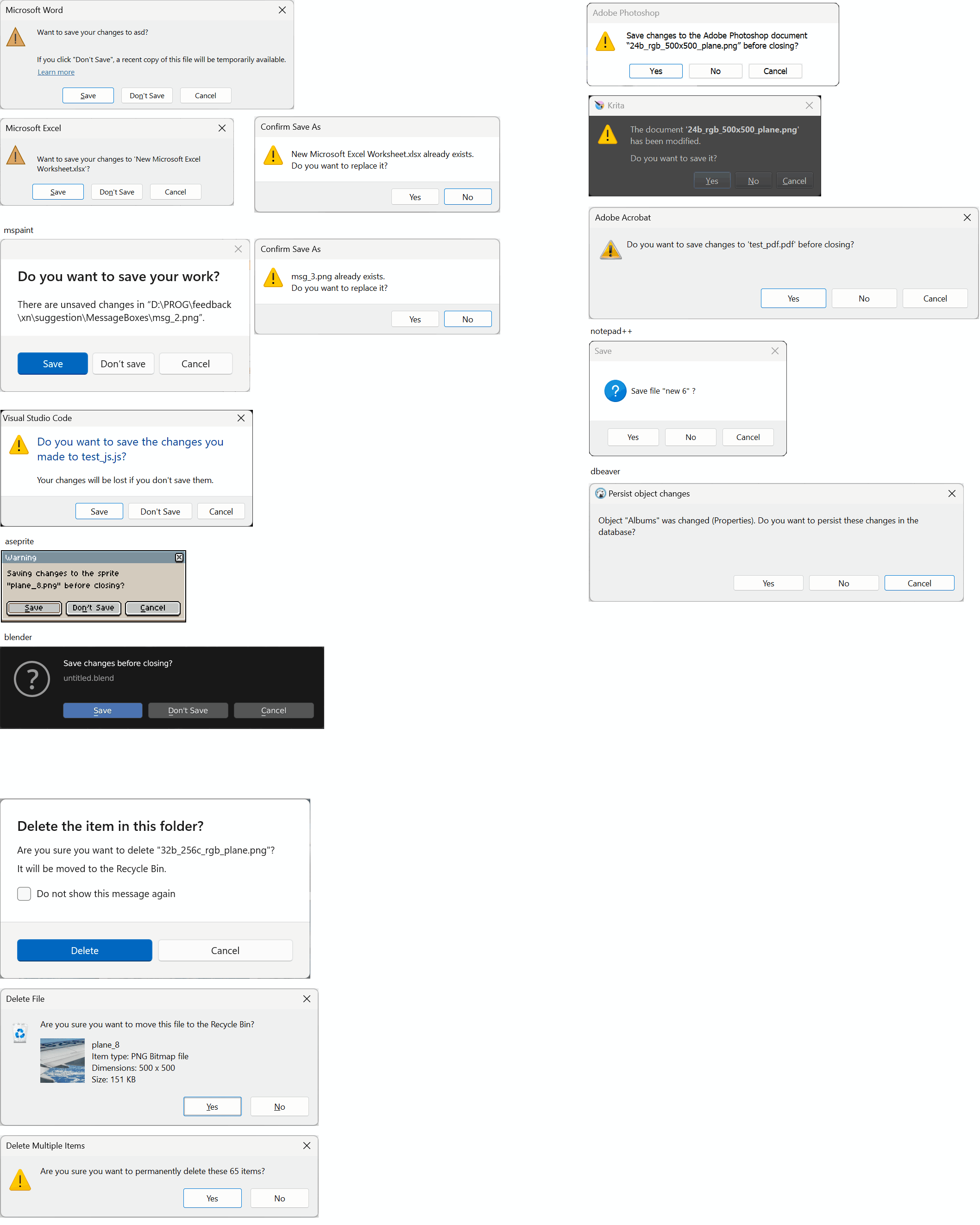 App UI - messageboxes - unify design