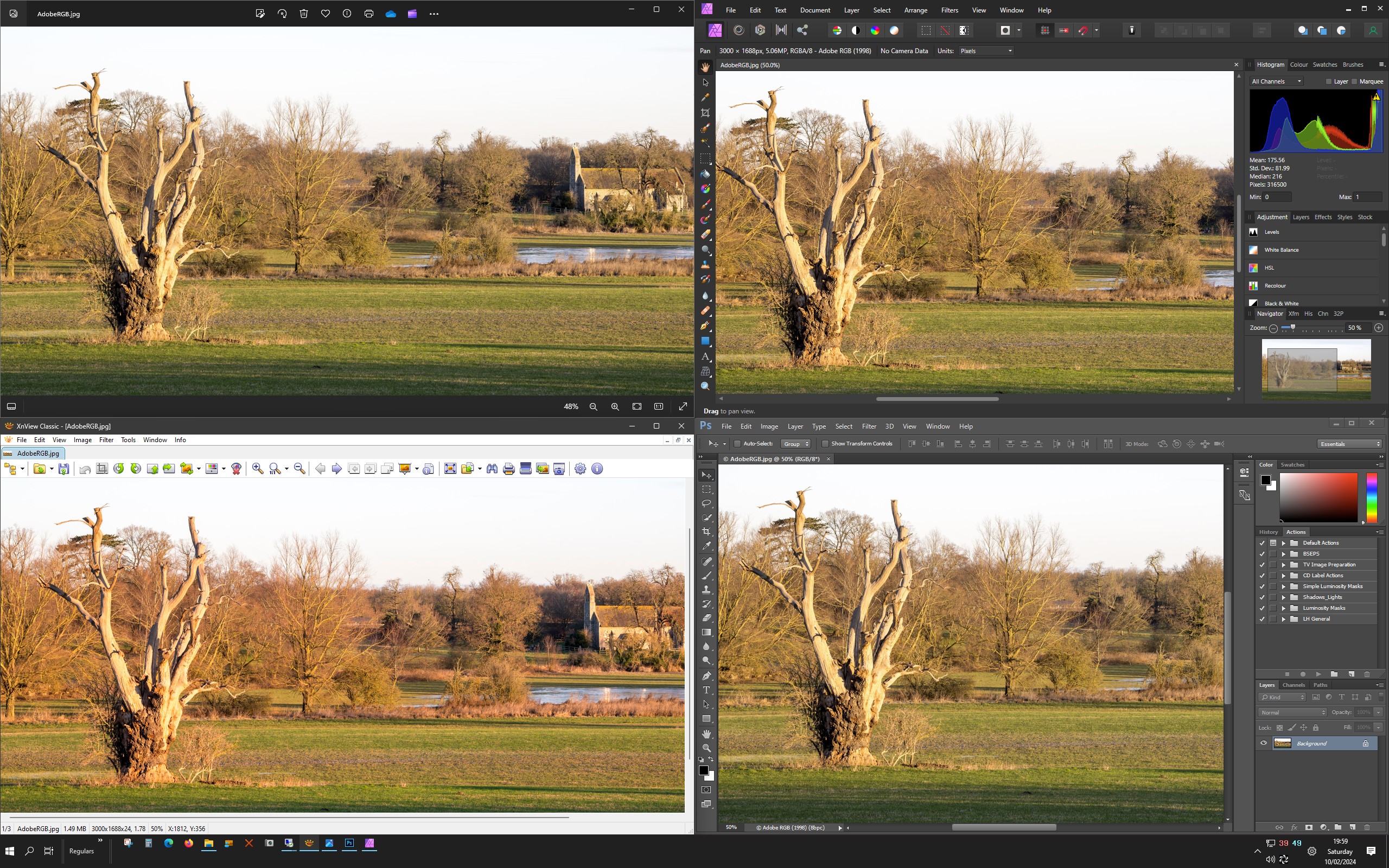 Viewing the sRGB & AdobeRGB versions of the image in XnView shows identical colours for both, thus proving XnView is using the embedded colour profile, but the final result is wrong.