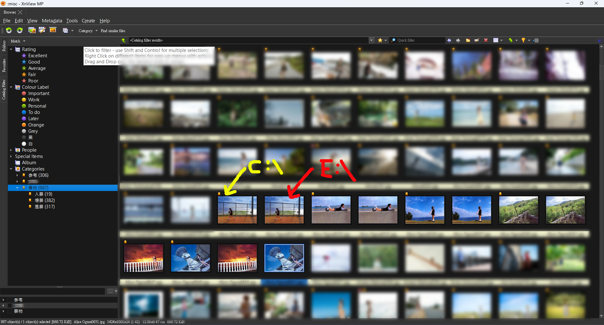 alee001 wrote: Wed Mar 06, 2024 2:10 pm My operation is to mark the categories on the newly added photos in the folder of the C drive, then back up and copy them to the same folder of the E drive, then delete the photos with the marked categories in the E drive, and use the filter to appear this situation.