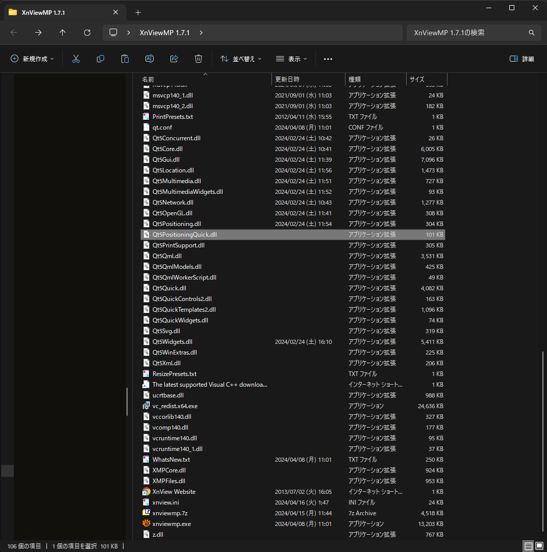 ・Overwrite each dll in the same hierarchy as xnviewmp.exe in XnViewMP1.7.1 with the dll in XnViewMP1.5.5, and check the operation.