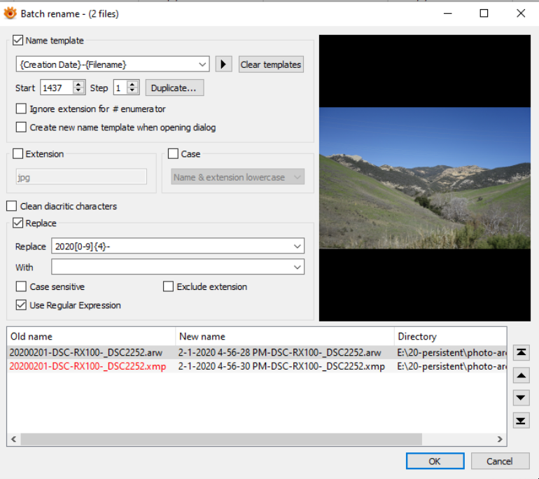 Re: 1.7.2 batch rename using exif data in template fails on companion files