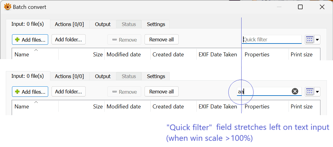 "Quick filter" field stretches on text input if win scale >100%