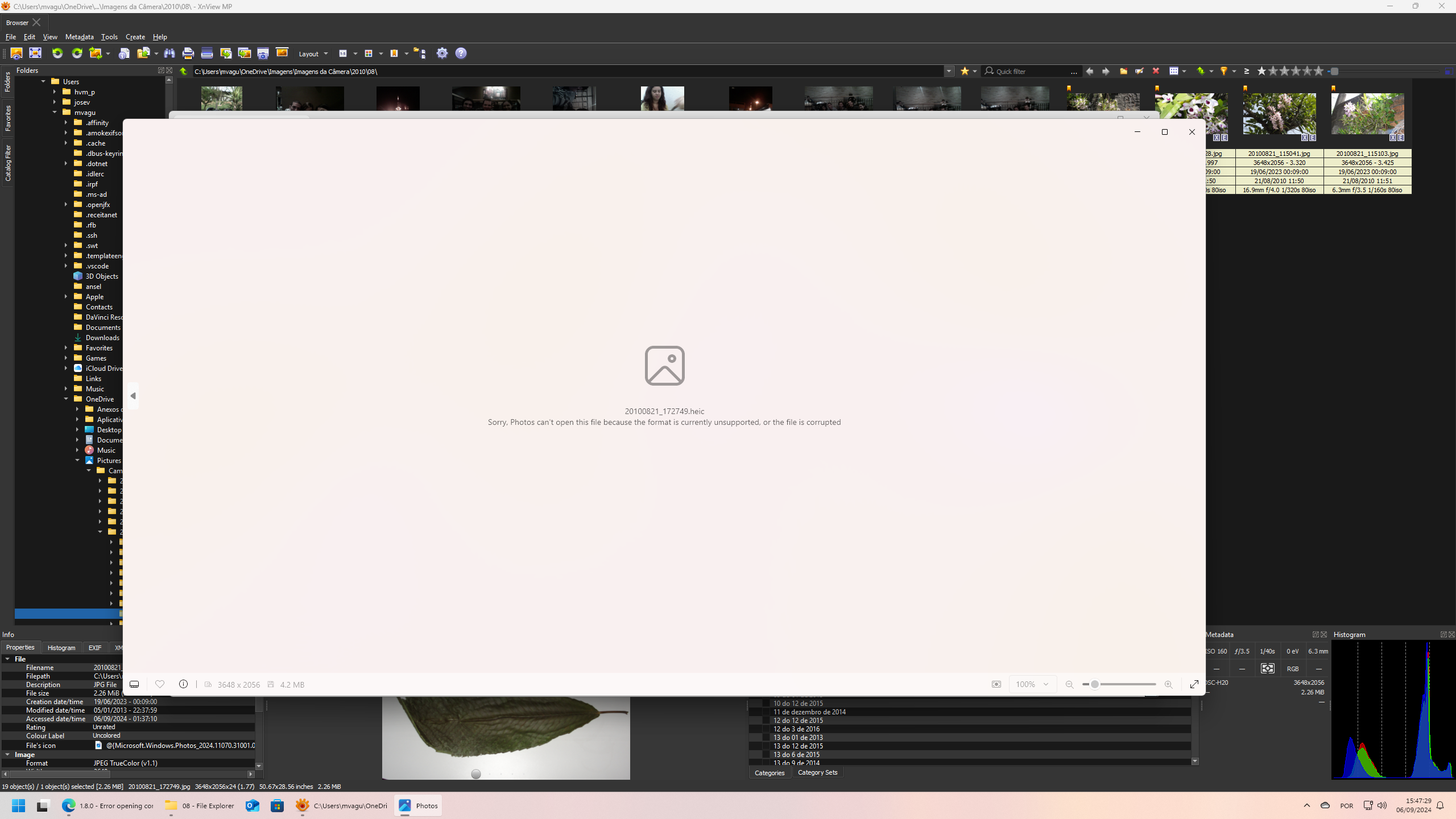 Any jpg file I try to convert, this happens. The resulting heic file can be opened and viewed in XnView, but any other app on Windows can't open it, like Photos, Paint, Affinity Photos or any other.