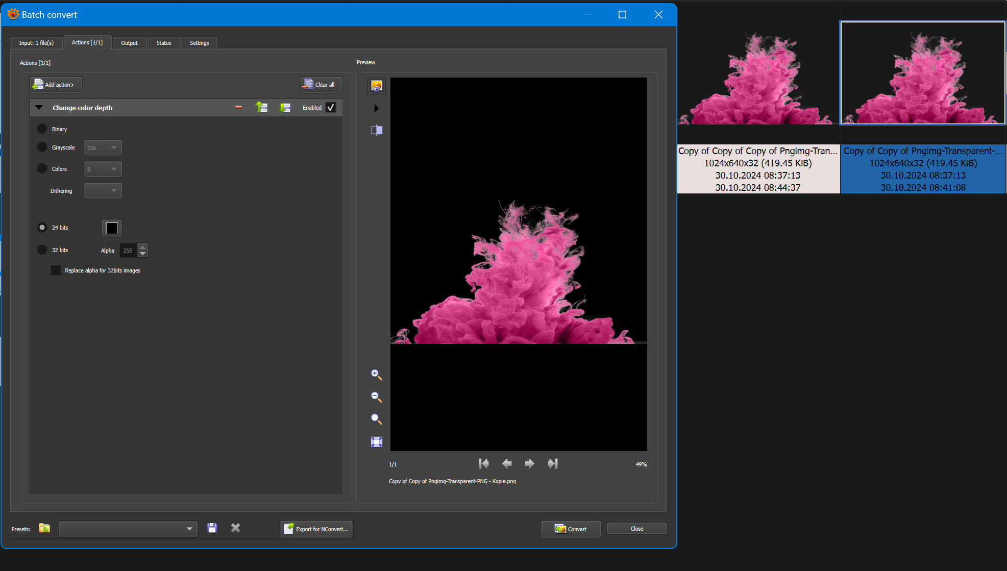 xinni wrote: Mon Sep 23, 2024 9:08 am I'm trying to batch convert some pngs with transparent background to JPEG format with black background color...