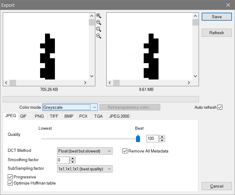 But that doesn't mean that the number of colours in an image saved as a JPEG may change, images containing eight colours such as Peter2's images still contain only eight colours when saved to JPEG format.