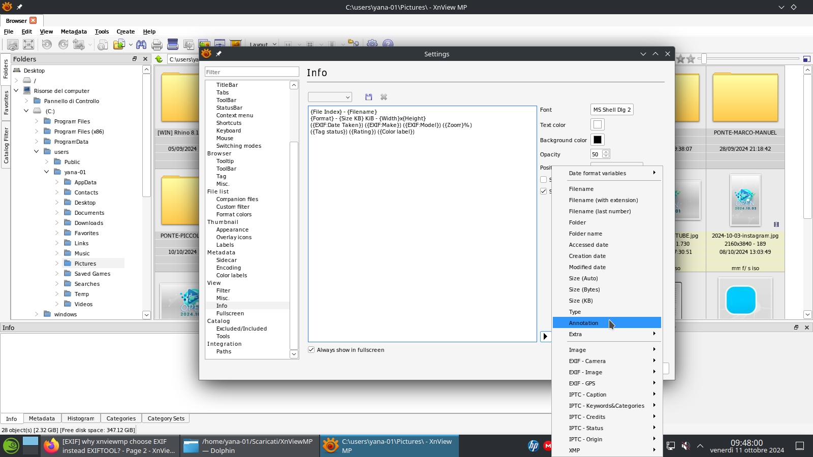 I'm pretty new to XnView but loving it so far. Trying to navigate my way around the Information that can be displayed on top of each image when displayed as single image/full screen.