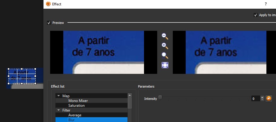 3) turn on 'preview' - original image appears in the 'Effect' window, with 'before' and 'after' versions left/right.