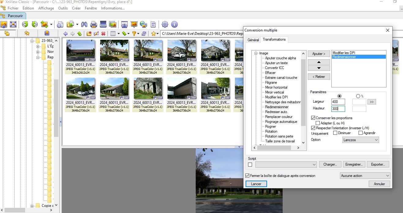 J'avais l'habitude de travailler avec XnView Classic. J'ai maintenant téléchargé la nouvelle version XnView MP. Depuis, je ne me retrouve plus, les interfaces ont changé et de plus, l'information est en anglais seulement. Je voudrais tout simplement réussir à modifier les dimensions et les dpi de photos par lot. J'ai inséré une capture d'écran de ce que je fais sur XnView Classic. J'aimerais réussir à trouver la même chose sur XnView Mp. Aussi, existe-t-il une version de XnView Mp en français ? Quelqu'un peut m'aider ?