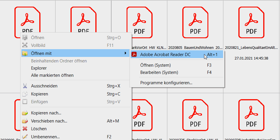 If "pdf" is setup in windows to "Acrobat Reader" we can open the pdf with shortcut "F3" ...