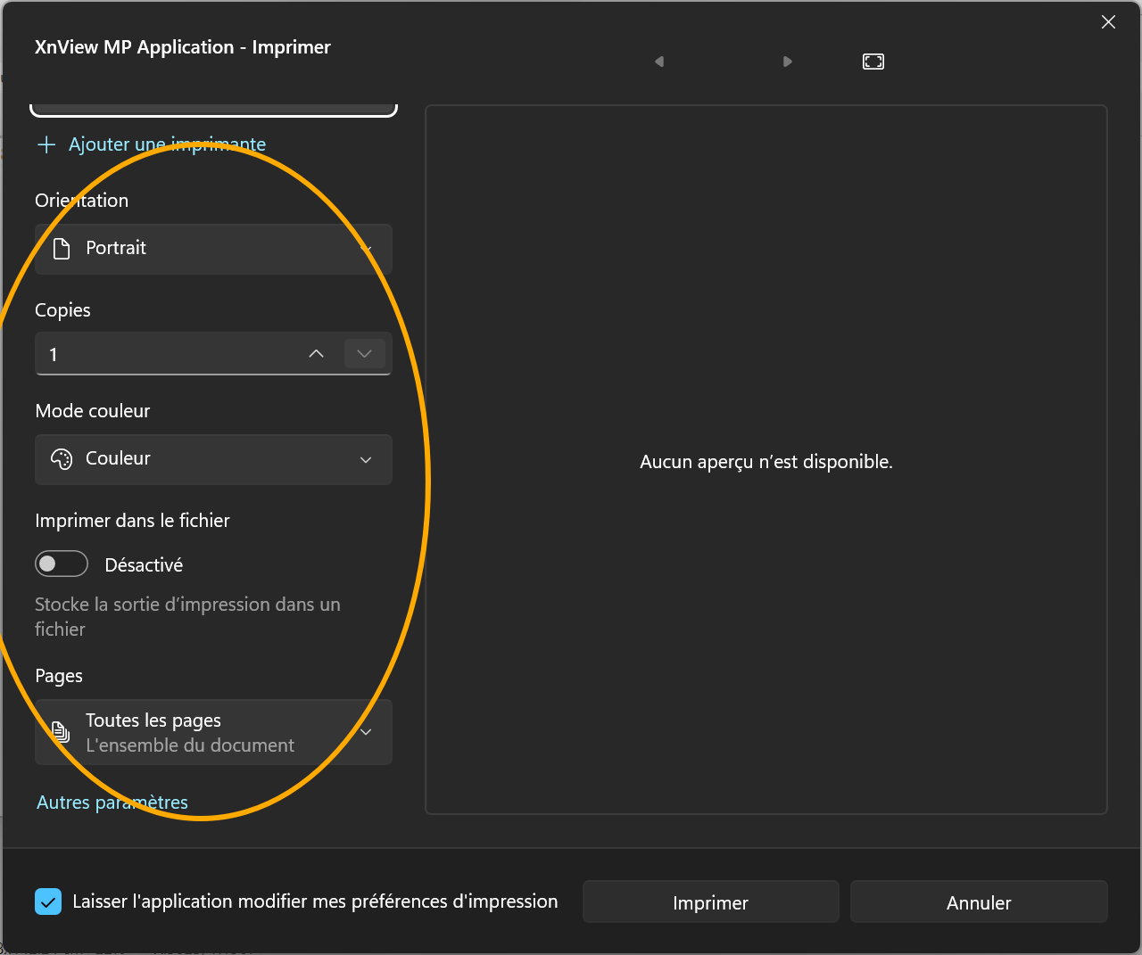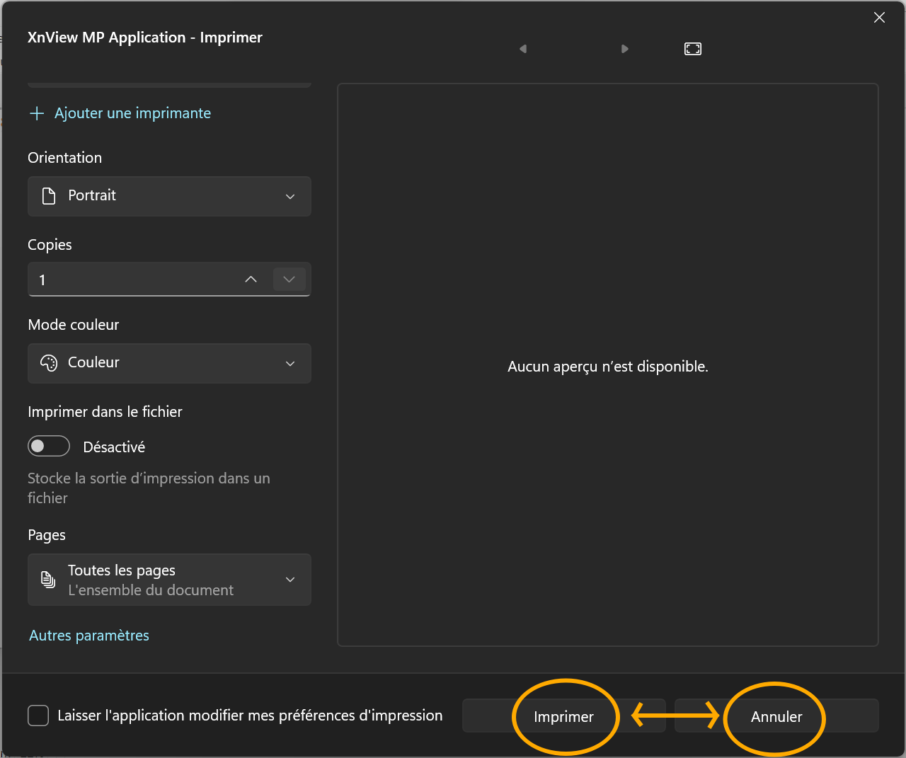 Previously, a Ctrl-P triggered a large window named "Impression à partir de l'application Win32" and there was a statement that the application do not support preview (like for XnViewMP).
