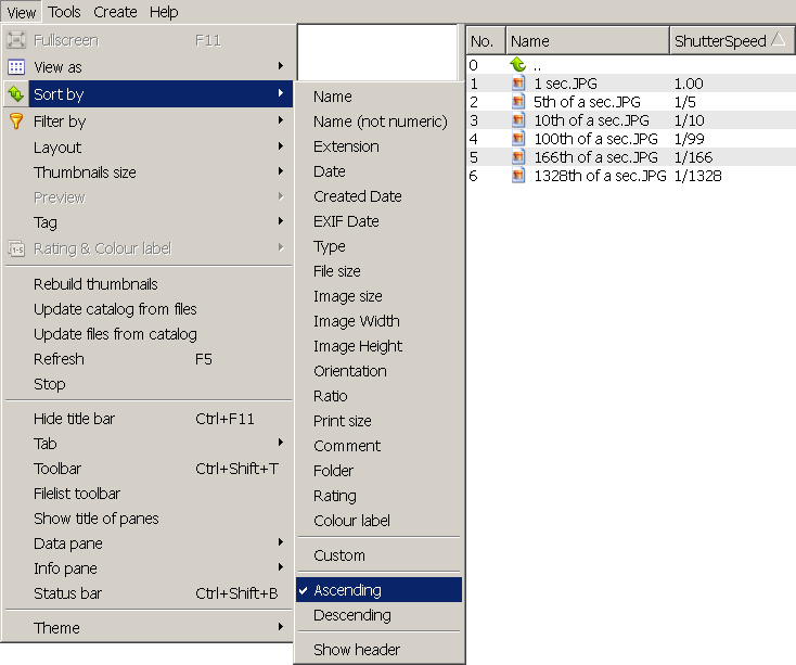From what I can see the sort order ascending/descending is wrong: When sorting ascending, list should start with shortest shutter speed and end with longest shutter speed.