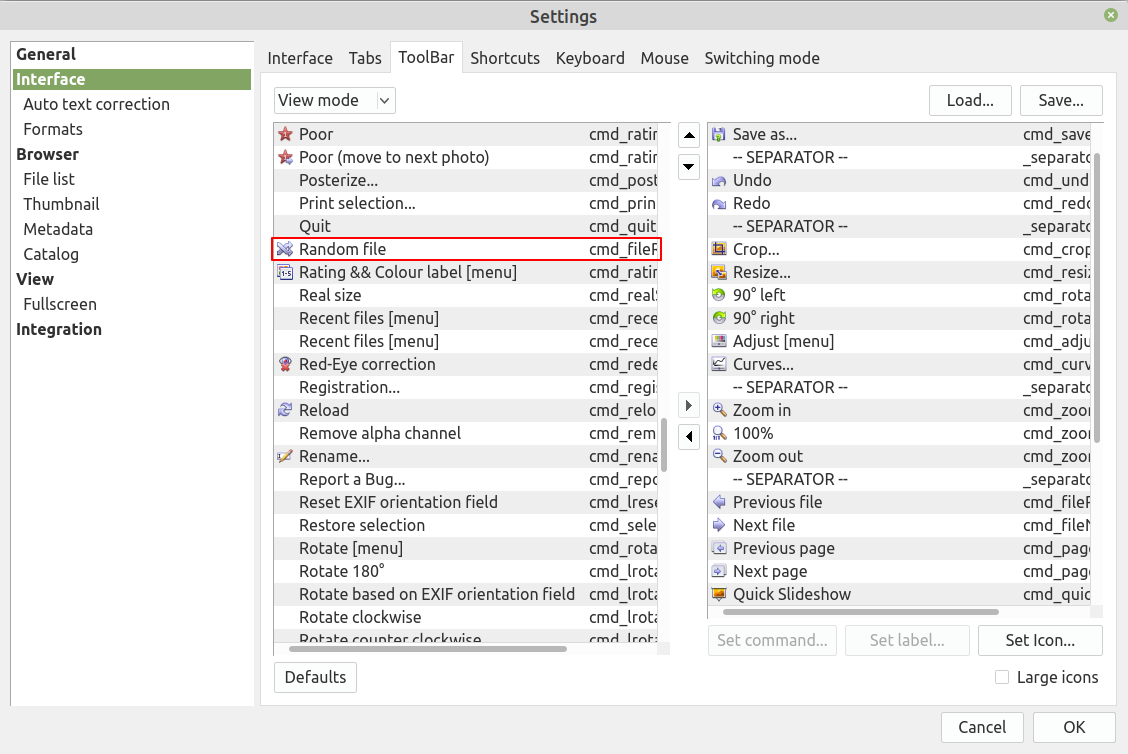 Creating a shortcut for Random File under the Viewer shortcuts, using CTRL + M