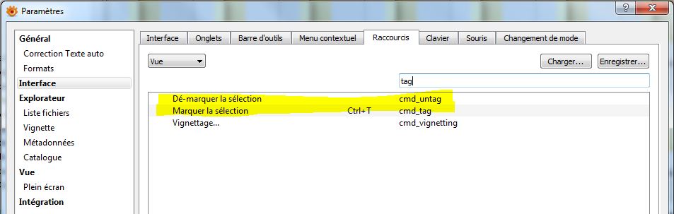 Here again there is no key combination for the Untag action but it works as On/Off, fine again.