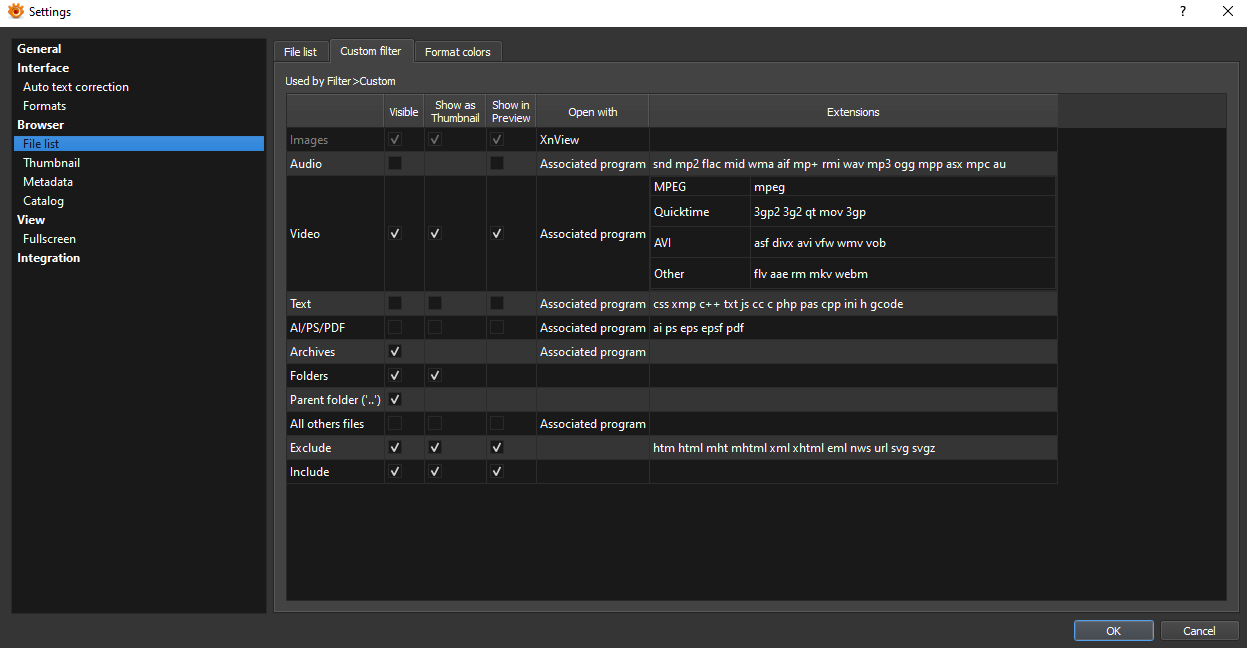 Please in 'Settings>File list>Custom', add an extension for mpeg & archive, there is a bug when empty
