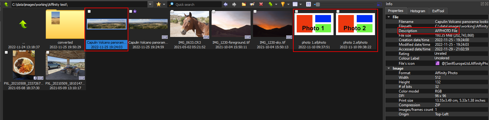Also, I just noticed something interesting... I can double click on some afphoto files and they'll open fullscreen in XnView MP, while others (seemingly consistent except for the actual visual content) will launch Photo and open there instead. Weird.