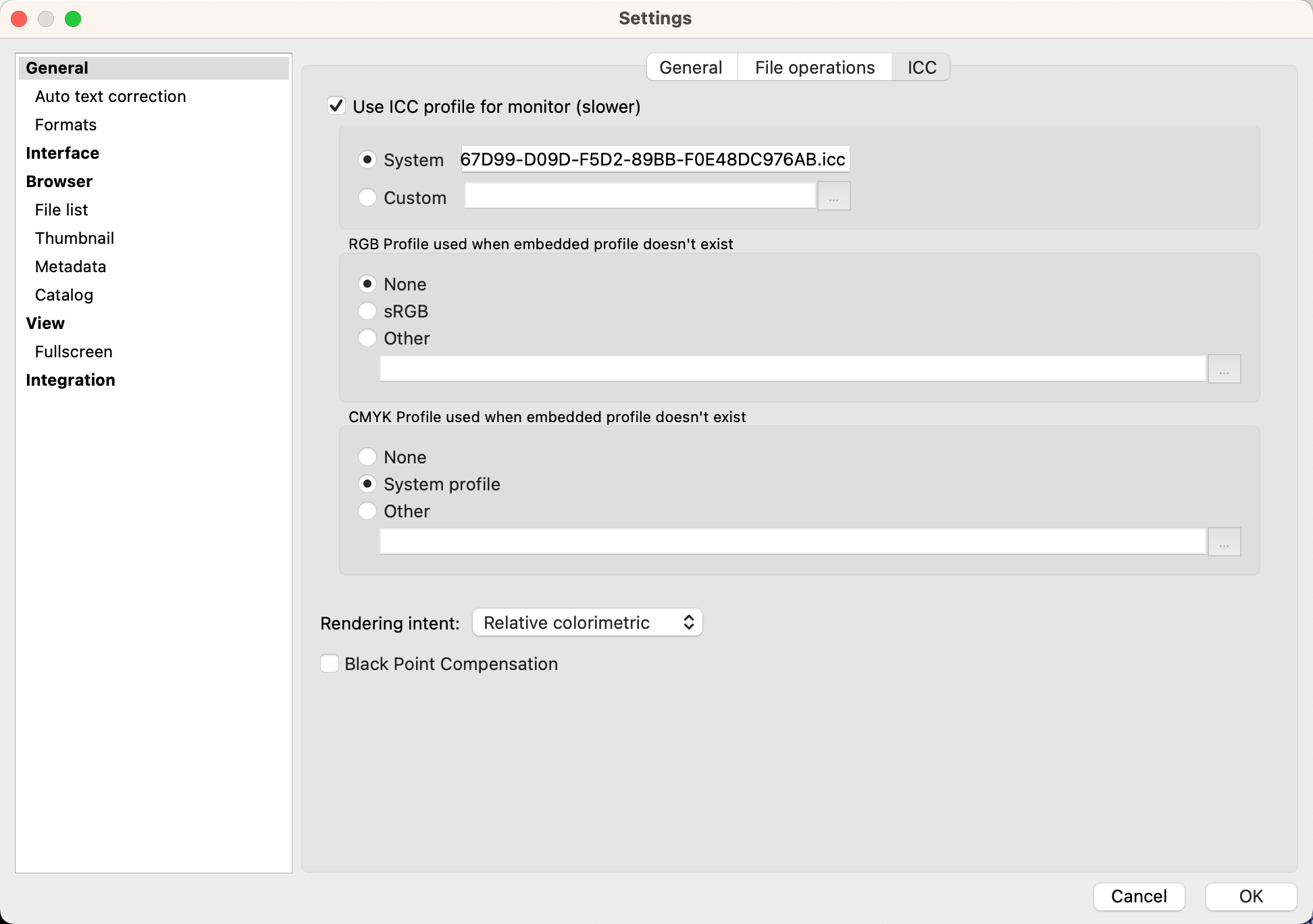 - Unzip the 1.5.0 beta 1 archive, run it, and make sure "Use ICC profile for monitor" is enabled;