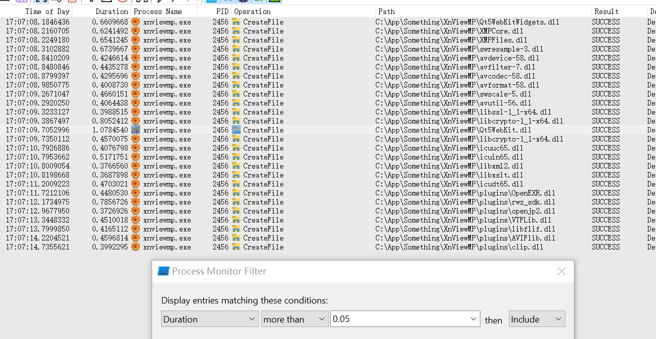 promon shows that xnview takes tons of time loading some dlls
