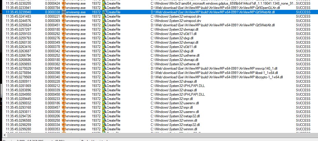 promon shows that xnview takes tons of time loading some dlls Here's the full log (this run takes 8 seconds btw):