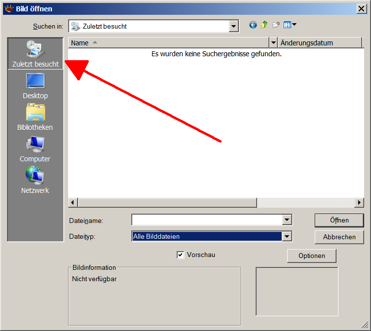 No problem with XnView installed on my Windows 7 x64 run from a User account, File > Save As... > Recent Places populated...