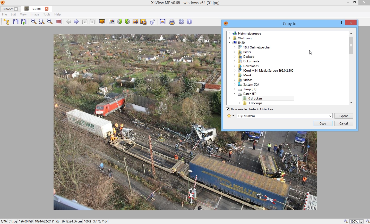 I want to copy/move it to a different folder. If I do this with only one pic, it works - I find a