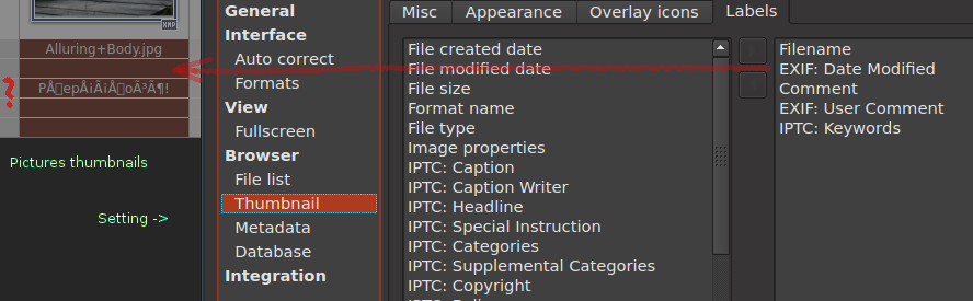 Re: Thumbnails - bad text encoding + I dont see exif data