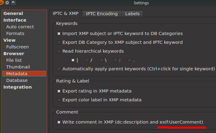 2) I "Write comment in XMP", but exif:UserComment dont show in labels. (It would be solve my 1st problem!)