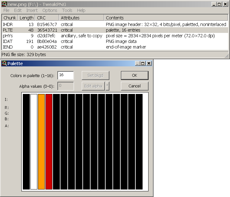But that shows the number of colours??I used tweakPng to display the file details and noticed the palette size increased.