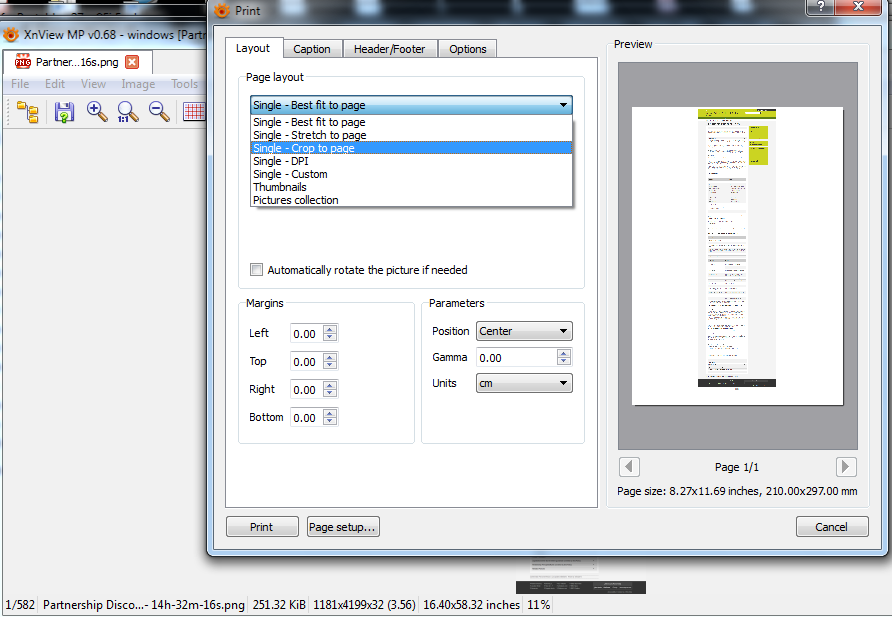 Is it possible that XnViewMP could implement an Office style printing option of page breaks.