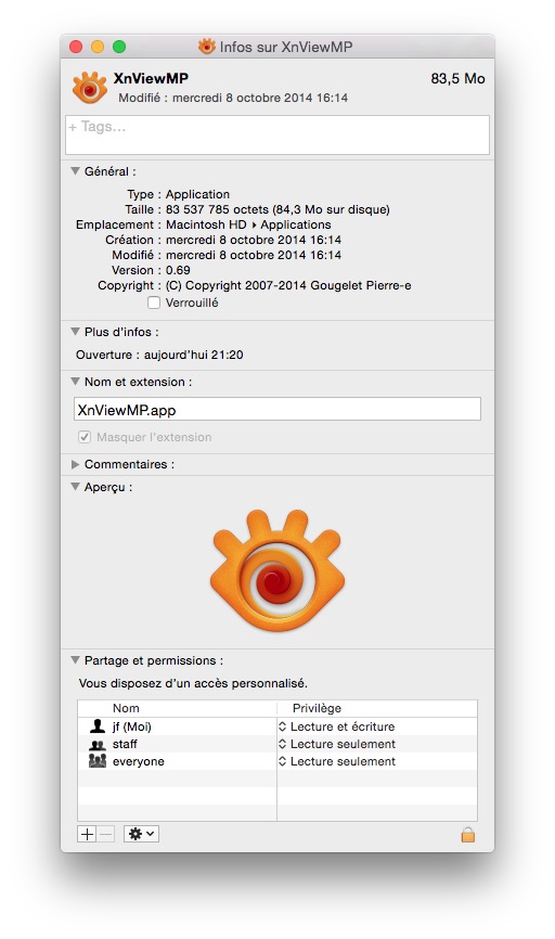 Re: Impossible d'ouvrir XNVIEW MP 0.69 - MAC
