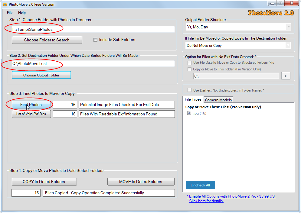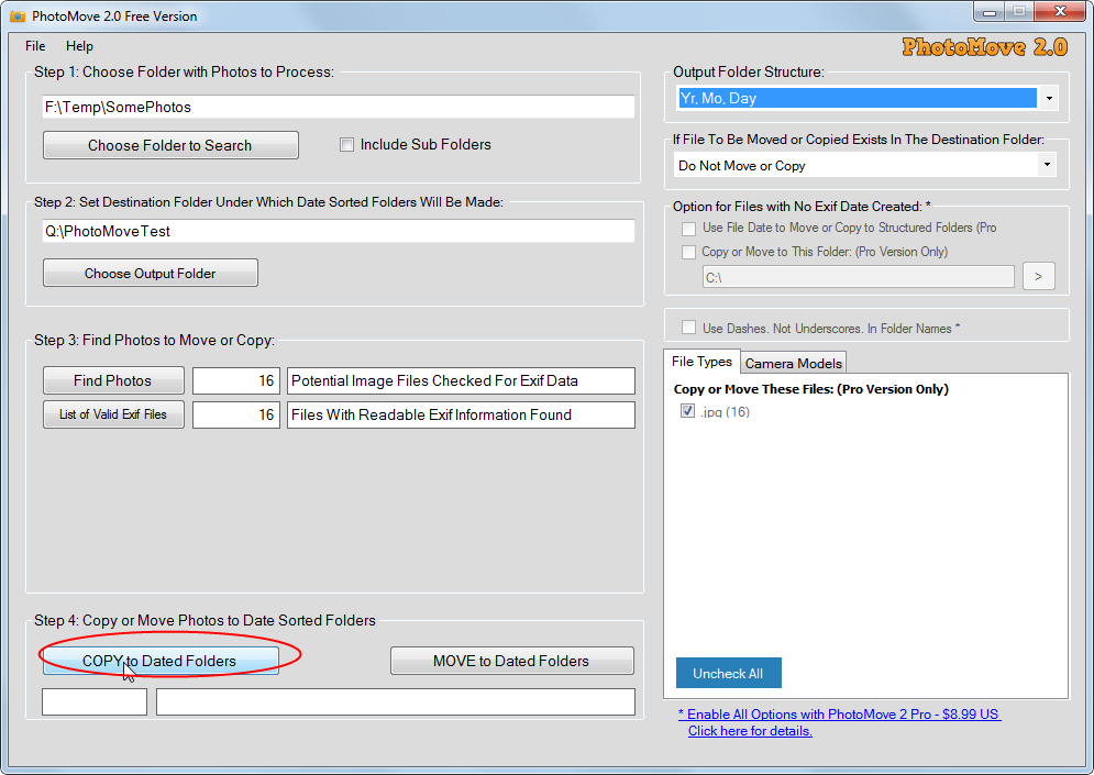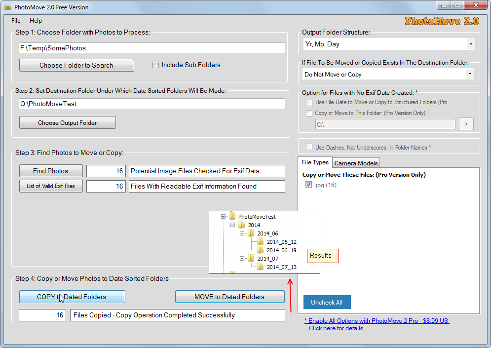 - select destination folder and -for instance- <Img Year>-<Img Month>-<Img Day> (results in \2015-01-25)