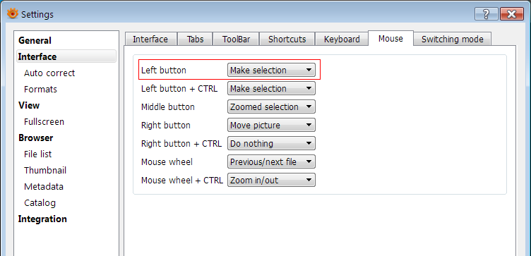 Do you have this setting:hans-jürgen wrote:How do I select a part of the picture that I want to cut out now? Simple left-click and dragging a frame around the part I want to keep with the mouse does not work for me anymore compared to XnView Classic.