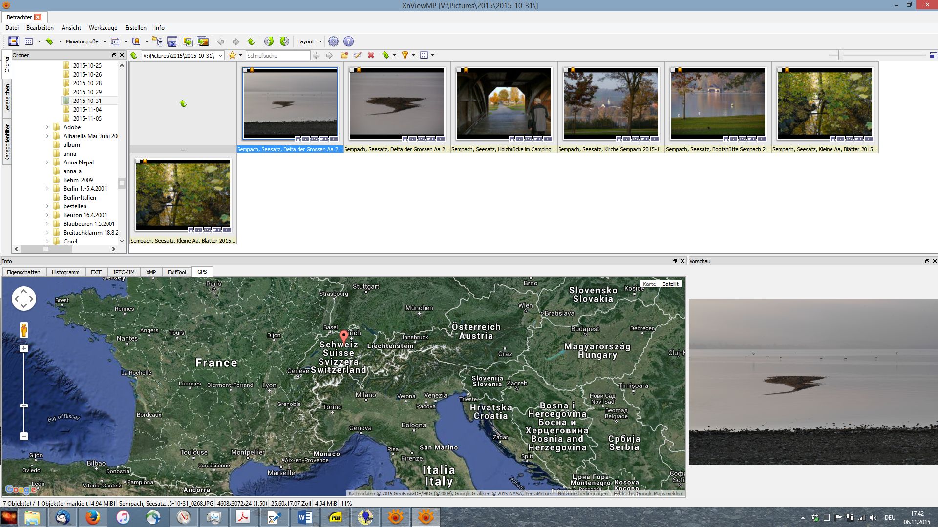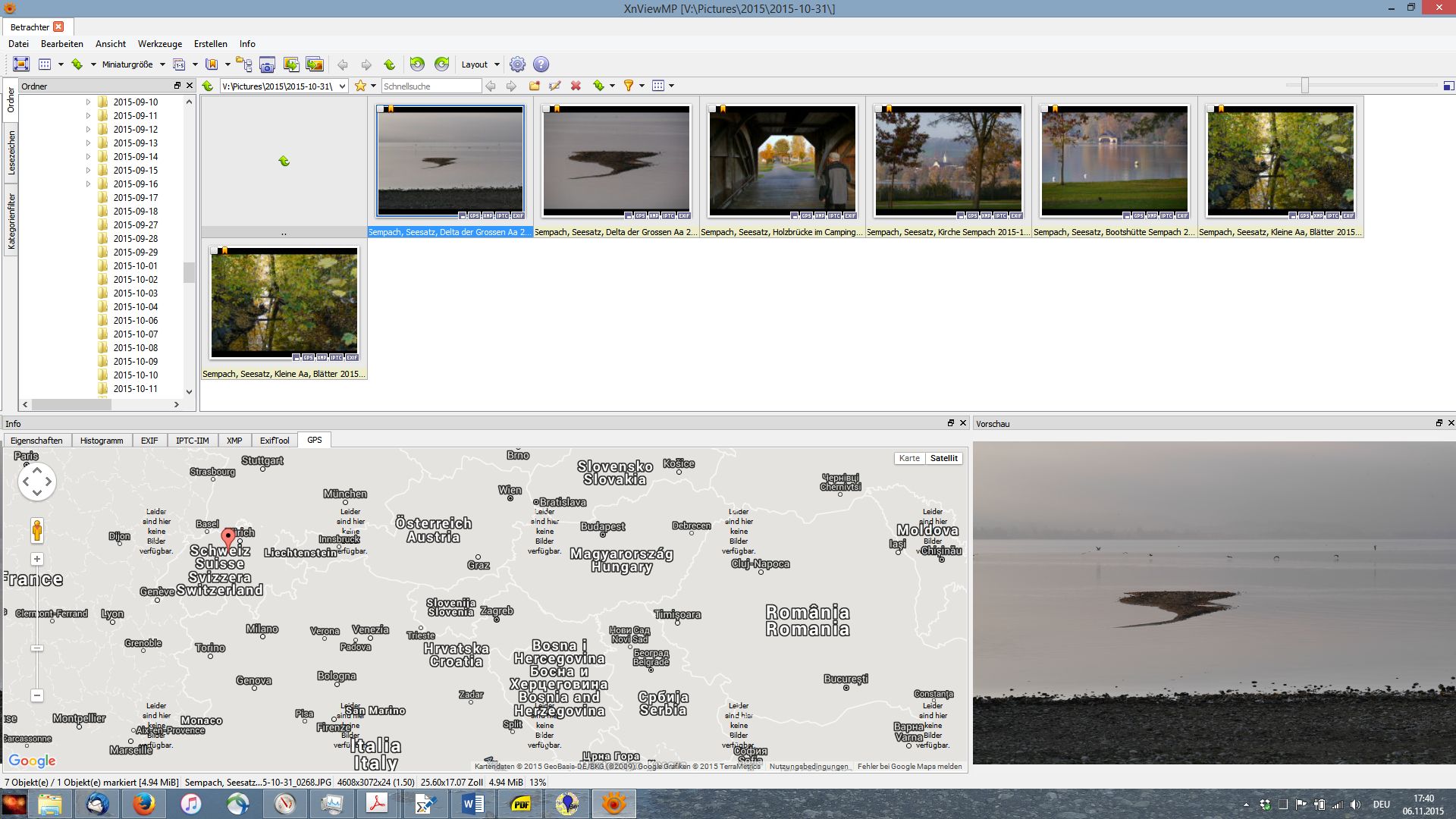 When switching to the satellite view on the GPS folder xnviewmp (64 bits) indicates that there is no data available. The standard map works. Google maps work in other software like geosetter or in the web browser. I have uninstalled xnviewmp and deleted the folder in %appdata%. I then reinstalled the program, no success with the satellite map. I had copied the contents of the \c:\program files\xnviewmp to another drive. The old .76 program works with google maps.